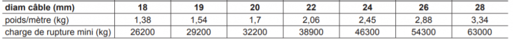 - Applications : câble EXTRA SOUPLE antigiratoire pour grues à tours, grues mobiles, ponts roulants de moins de 4 brins et palans